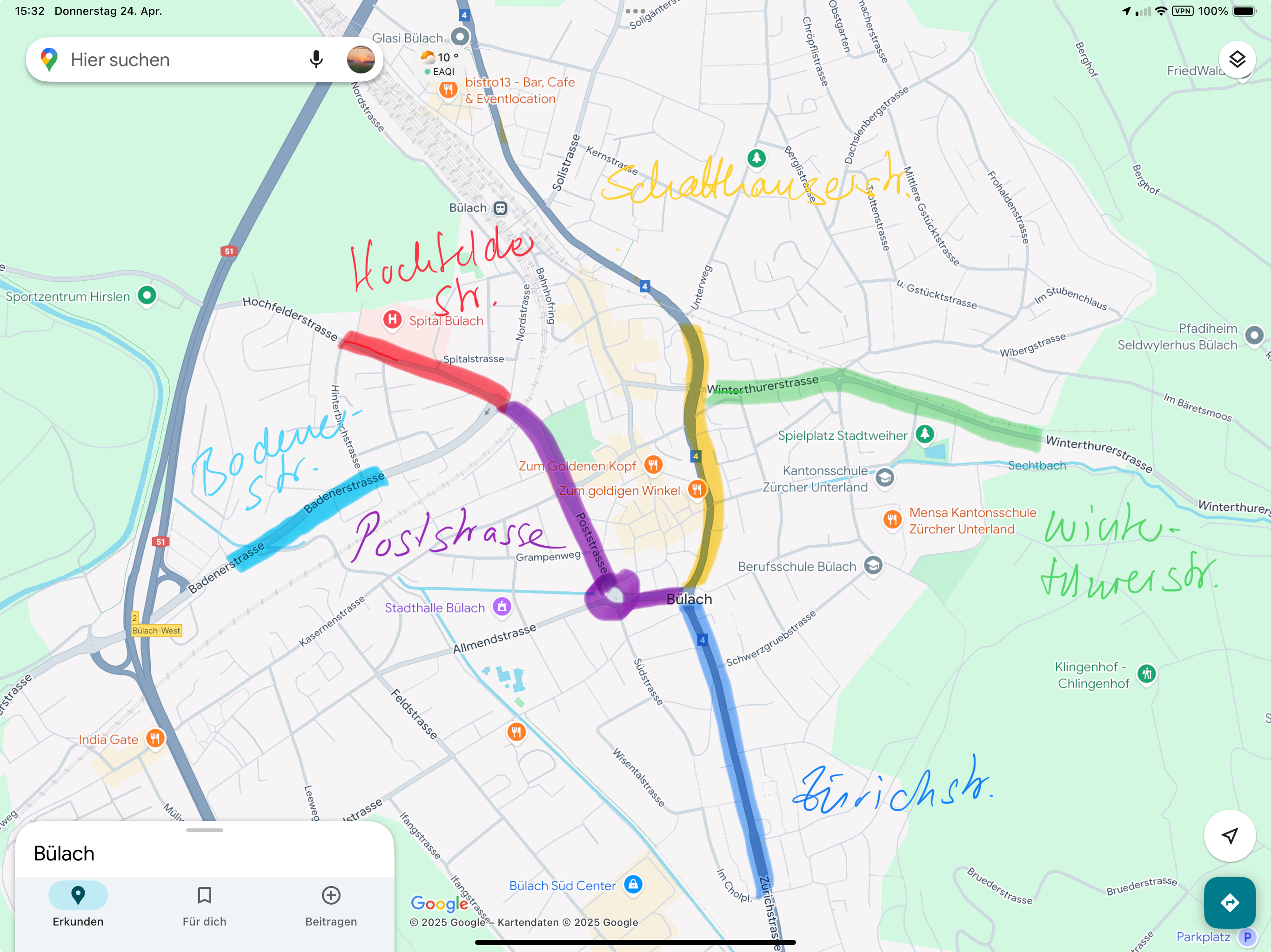 - Poststrasse ab Zürichstrasse bis Hochfelderstrasse