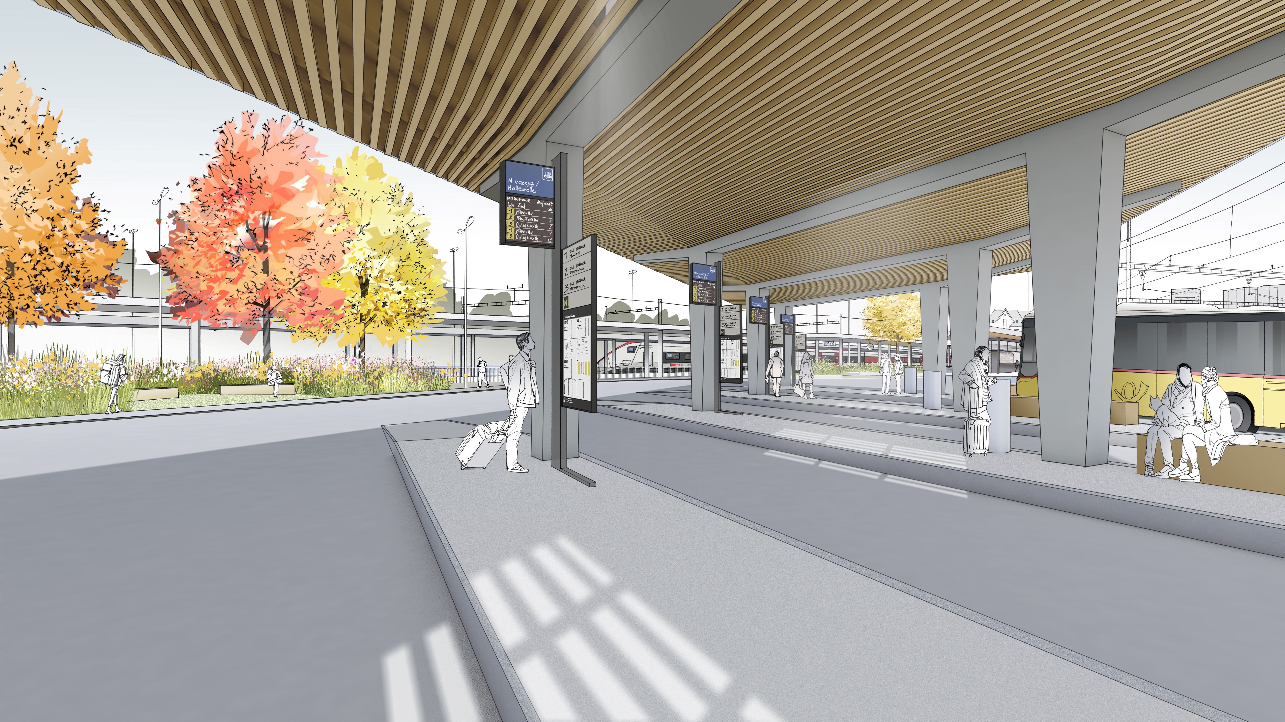 Der Neubau des Bushofs und der neue Gleis-Park sind Teil der Entwicklung rund um den Bahnhof (siehe Raum Bahnhof, Projekt 5).